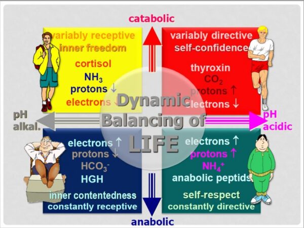 Anabolic synthesis metabolism and catabolic energy metabolism are interlinked and mutually dependent. Their activity is the same at rest. It is ensured by the so-called basic regulation, which is characterized by oxidation and reduction processes, i.e. by the constant exchange of electrons, a give and take. This alone ensures the “everyday metabolism” of the cells.