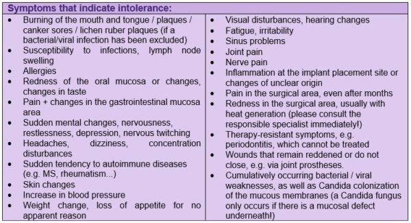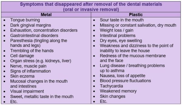 7,000 patients who had been diagnosed with such a material intolerance benefited significantly when the problematic dental material was replaced by a compatible alternative. After removal and drainage of the problematic materials, a wide variety of diseases were regulated within three weeks to six months.