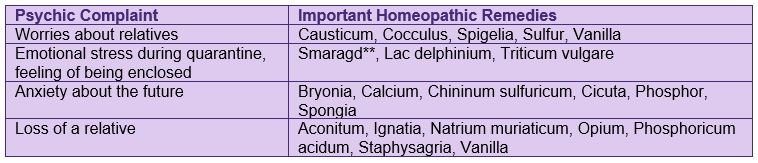 Table 2: Homeopathic Remedies for Psychic Complaints