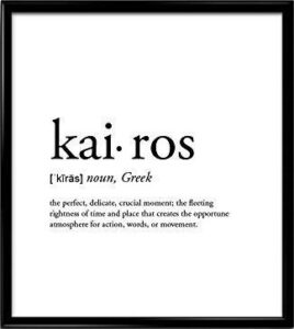 In Greek, both Kairos and Chronos literally mean “time”. Chronos refers to the passage of regular time as in “What time is it?” and possibly that old saying every parent has heard “Are we there yet?” Chronos represents a quantitative time that we measure with clocks and calendars. Kairos on the other hand represents a kind of qualitative time more like “the right time” or the right moment – the moment of opportunity. It is timeliness, decorum, symmetry, balance, or “the circumstances that open moments of opportunity” be it rhetoric, advertising or story.