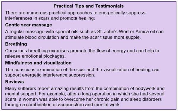 Fortunately, scar interferences can be successfully suppressed in most cases – often with amazing results. There are various methods that can be used to release energetic blockages and restore the flow of energy: