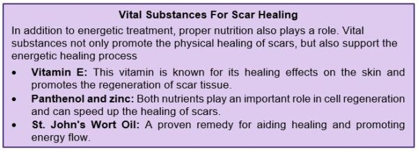 Ointments with St. John’s wort or Schuessler salts can help to relieve scars and harmonize the flow of energy.