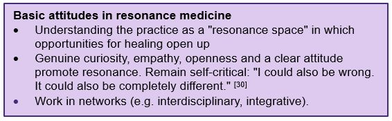 Many people know these special, almost magical moments in the consultation or at the bedside, in which an atmosphere of trust and coherence is built. Suddenly, mutual understanding and a tangible agreement set in. In such situations, time seems to stretch a bit and run slower. It is such “moments of consciousness” in which “the spark jumps” that, in my experience, have often led to change processes on the way to recovery and healing. These precious moments are difficult to describe in words. We also encounter them in other contexts of life, for example in exchanges with friends, when experiencing nature or when we deal with music or art. In this context, I refer to these phenomena as an experience of resonance