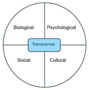 Figure 3: The 4+1 model of resonance medicine. The transverse level is a connecting deep layer that underlies the other fields. [Diagram © Dr. Moyzes]
