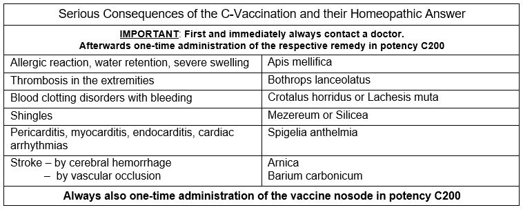 Serious side effects of the C-Vaccination can also be countered homeopathically.